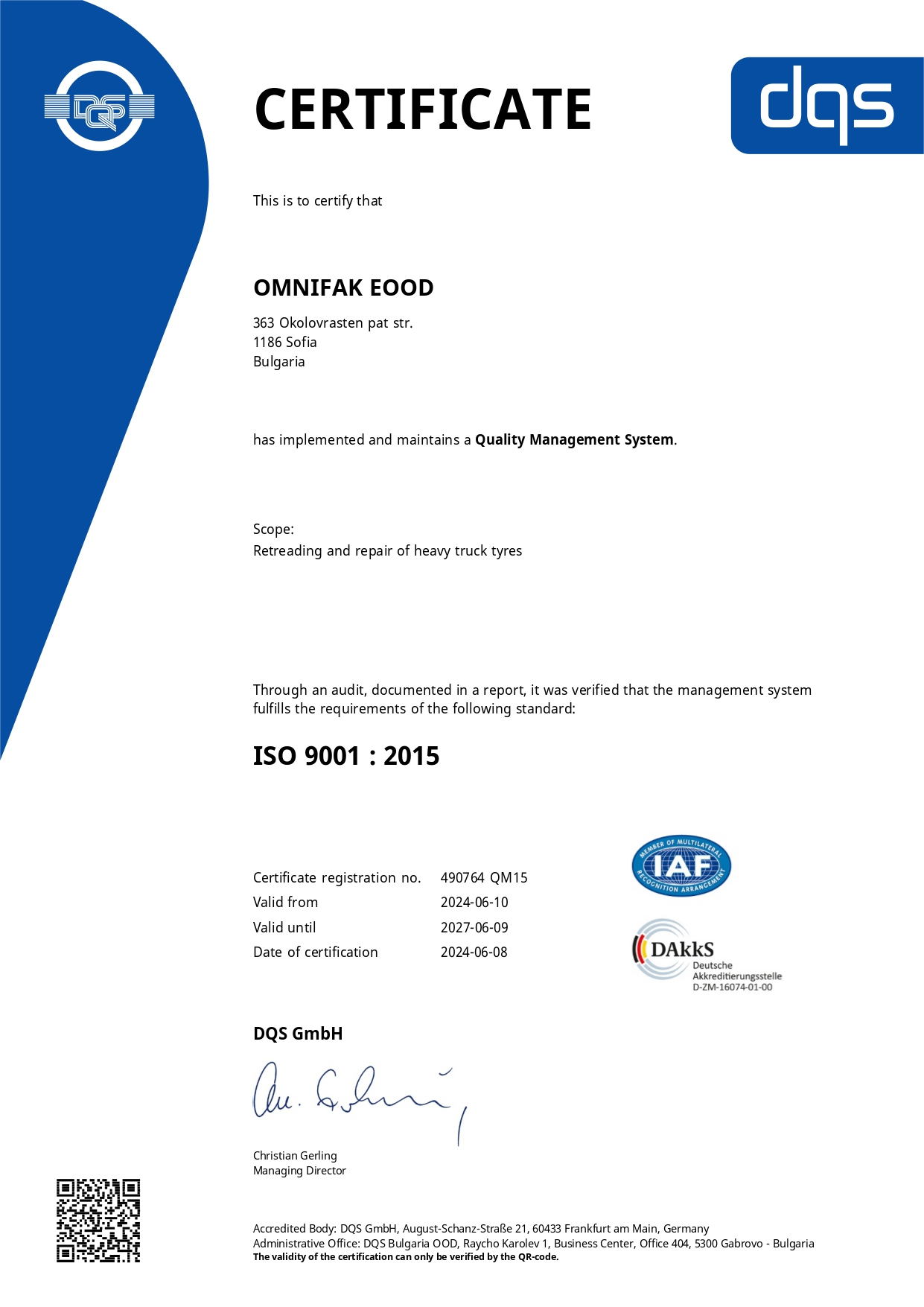 Фирма ОМНИФАК е с дългогодишен опит в сферата на търговията и регенерирането на тежкотоварни гуми.